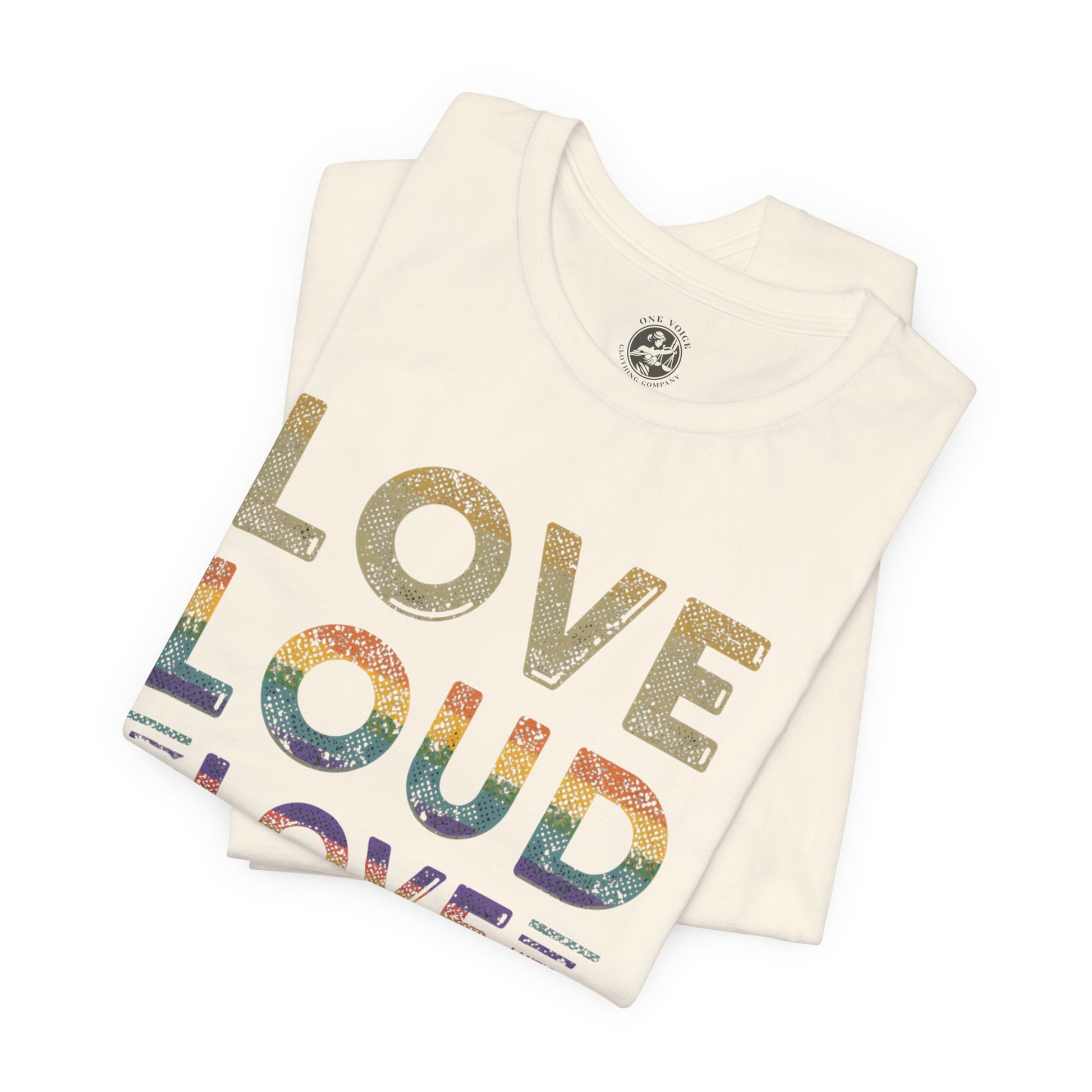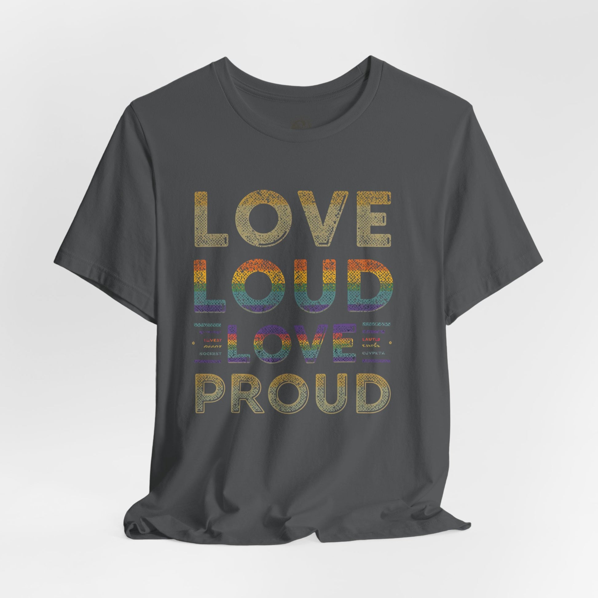 Love Loud Love Proud Tee | Unisex LGBTQ+ Pride Shirt, Equality Statement T-Shirt, Festival Apparel, Positive Vibes Gift for Friends