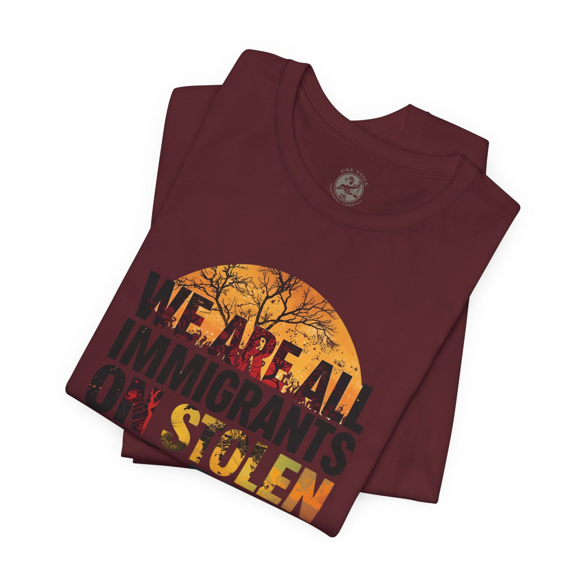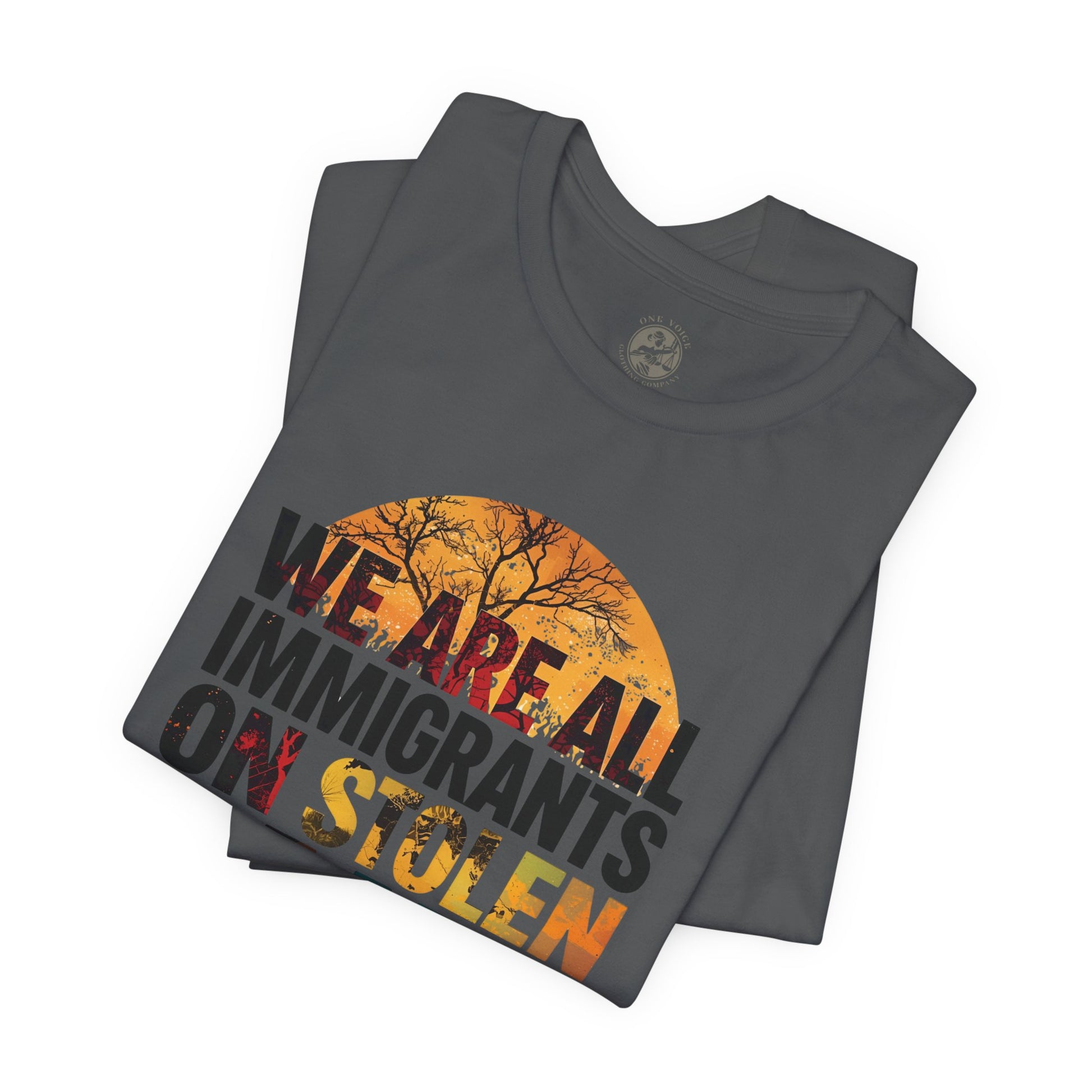 We Are All Immigrants on Stolen Land Tee | Unisex Jersey Short Sleeve T-Shirt, Social Justice Statement Shirt, Activism Apparel, Gift for Advocates